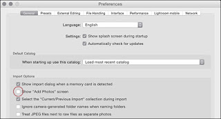 and prefer to bypass the new “All Photos” screen in Lightroom CC, under the General Preferences, uncheck the option to Show “Add Photos” Screen. The next time you import photos, the Select Source column sill be displayed (on the left side of the Import dialog), allowing you to quickly choose your photos from Devices, Common Locations, Favorites, and/or browse your computer.