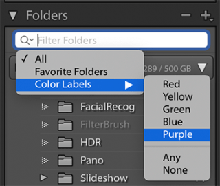 You can now filter your folders, collections, collection sets, and smart collections based on the color label assigned to them.