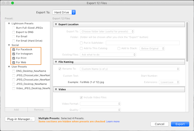 You can now perform multiple export jobs for the same set of images all at once. Lightroom Classic will export one image for every preset selected.