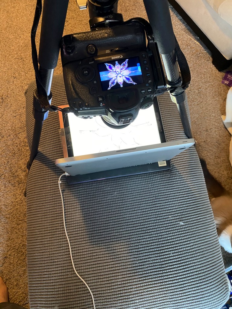 I also placed a sheet of Plastic wrap on the laptop and placed object on top of that for an really colorful background
