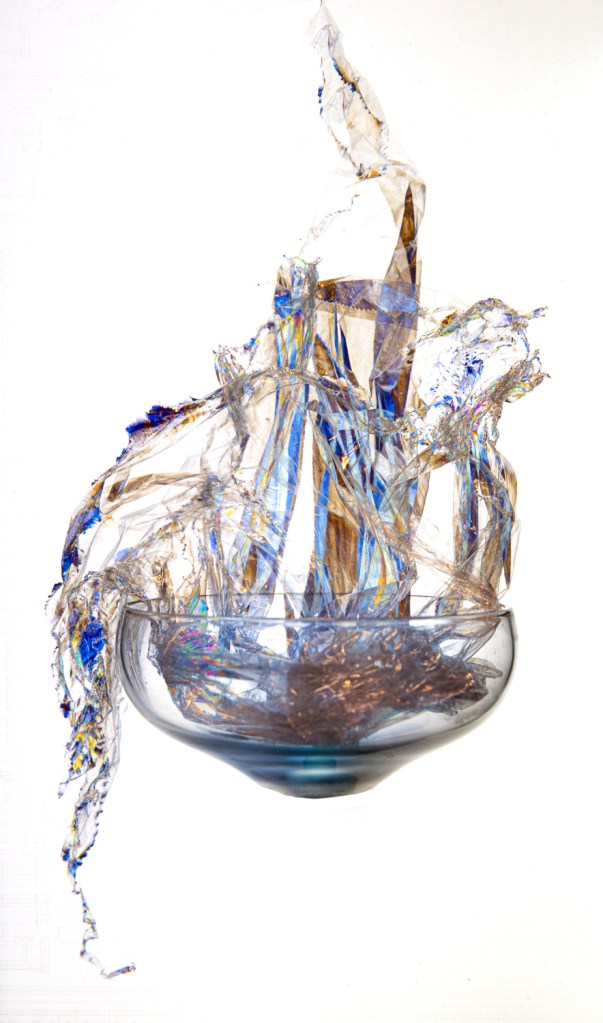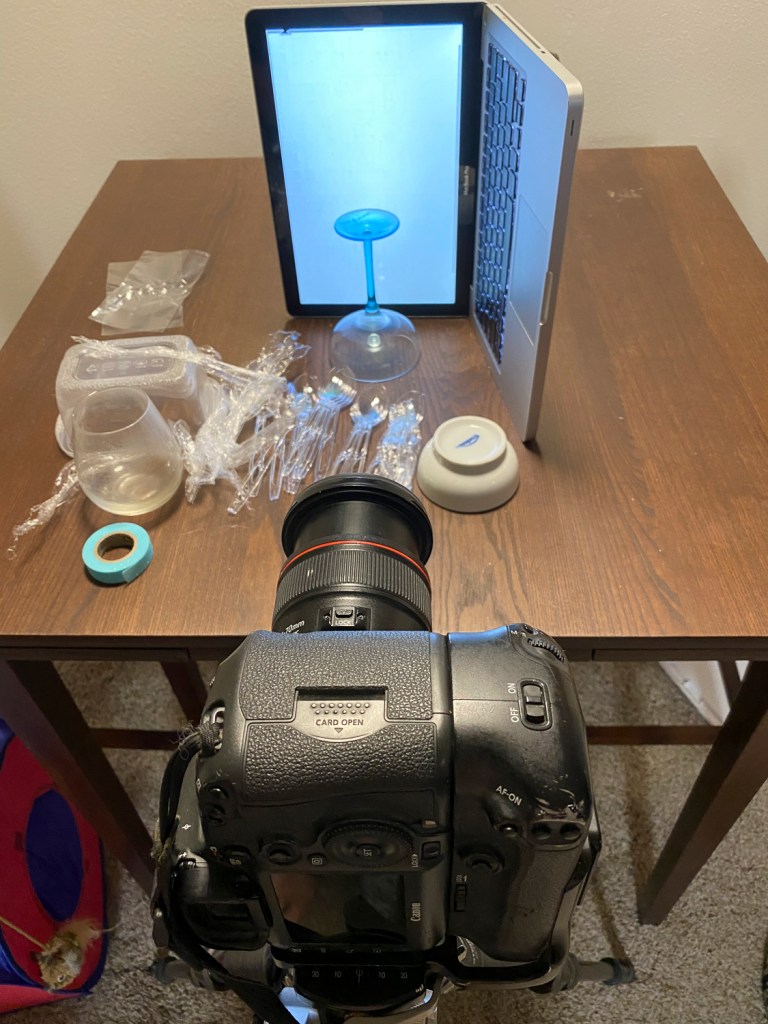Taking the Laptop and standing it up on the tabletop I started playing with plastic wrap in glassware. The effect reminded me of water splashes.