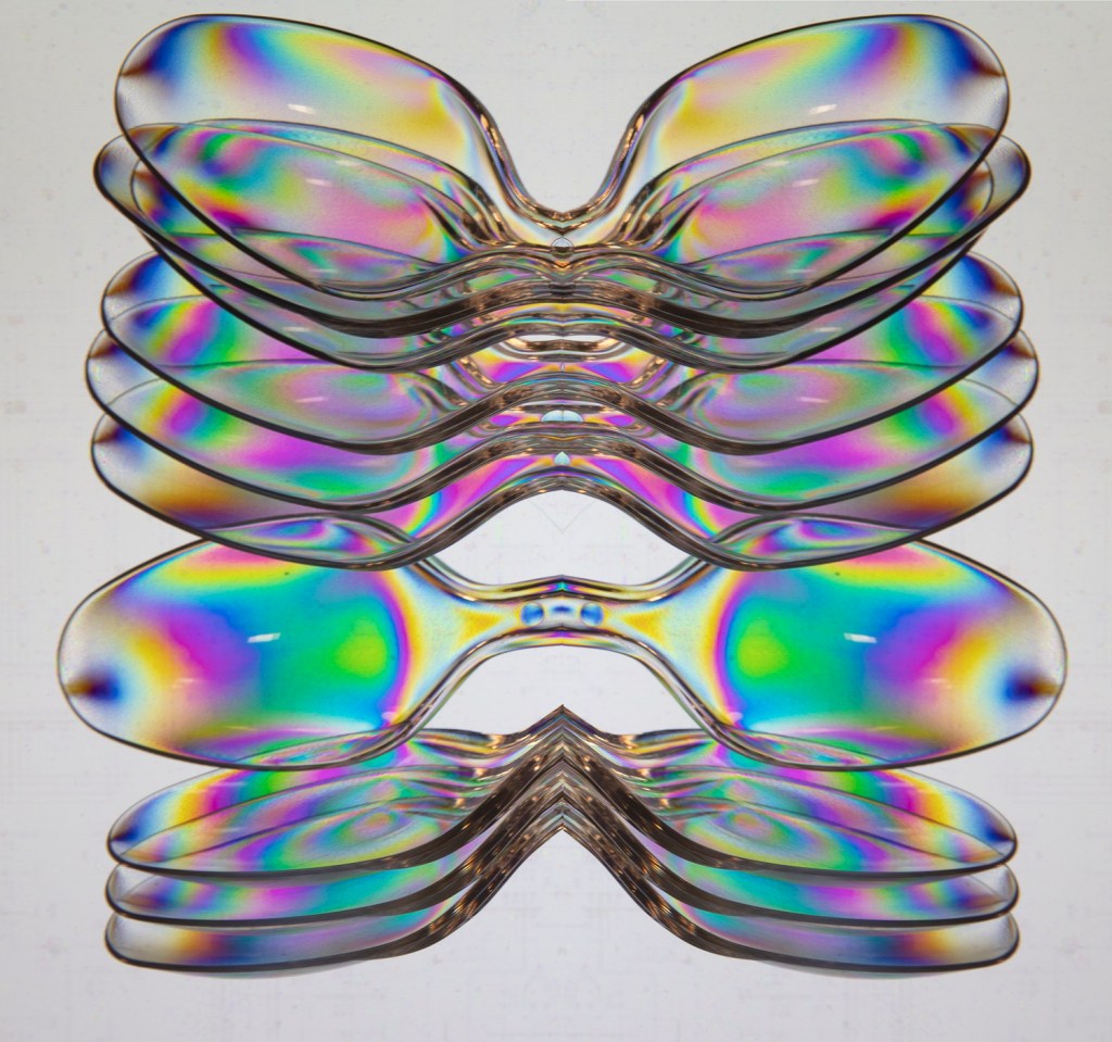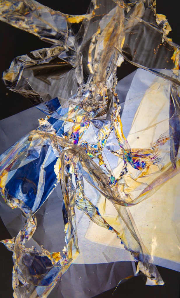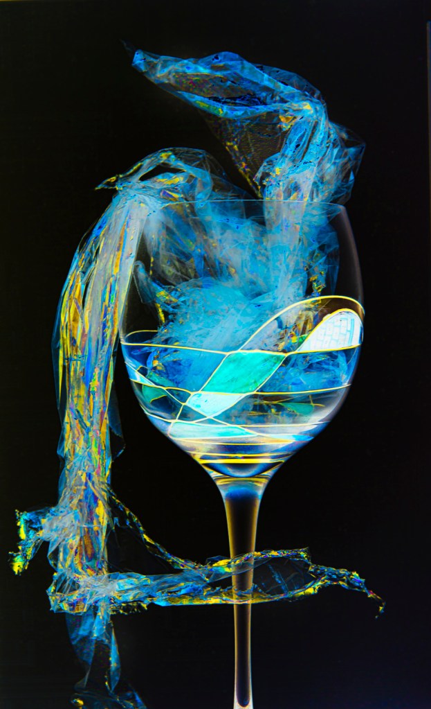 Photoelasticity is a fascinating effect that reveals the stress contained in plastics in a beautiful and surprising way. We can see this by using a polarizing filter while photographing under polarized light.