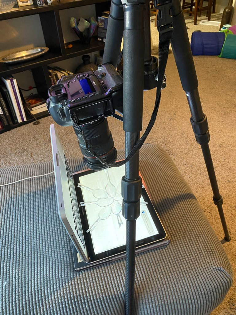 You can have the laptop screen lay flat on a table or you can stand it up and use the screen as a backdrop. Try both for different set-ups.