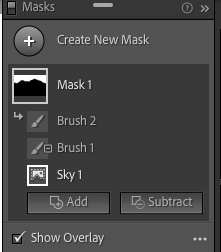 I first go to the new masking tool and SELECT SKY and TADA, it creates a mask. Sometimes its not perfect so I need to ADD or SUBTRACT from the mask to further refine it. No Problem