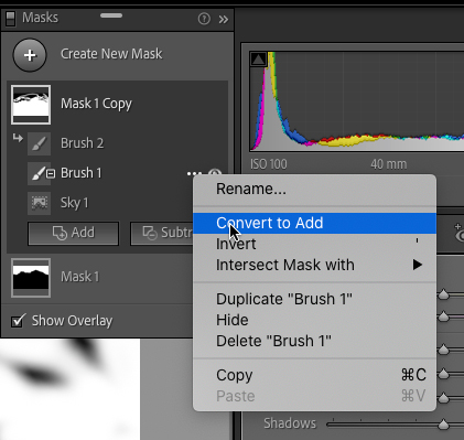 3. On the next level up click the 3 dots and select CONVERT ( it will either say Add or Subtract depending on what you did before) If you added on the first mask it will say subtract etc